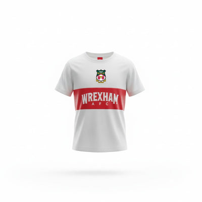 Featuring a bold red stripe across the chest with Wrexham AFC branding and the club crest sitting proudly above, this tee draws inspiration from classic kit design while delivering a modern, wearable style. Crafted from soft, breathable fabric with a comfortable relaxed fit, it’s built for all-day wear - whether it’s matchday at the STōK Cae Ras, time in the playground, or supporting from home. A standout piece for young Reds who want to wear their club with pride.